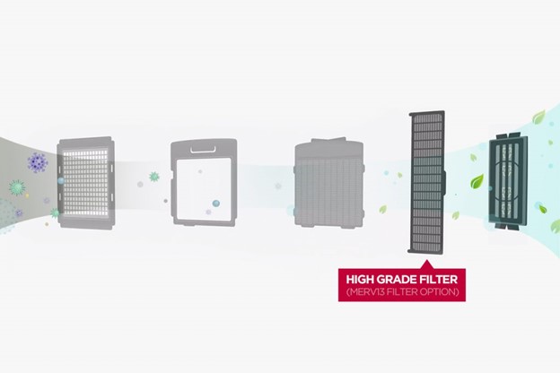 De LG DX ERV-oplossing met MERV13-kwaliteitsfiltratie garandeert verse lucht in grote ruimtes.