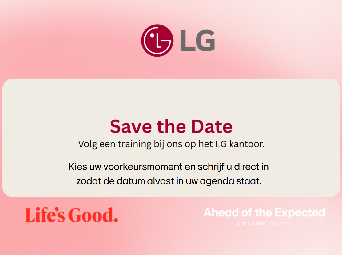 Graag nodigen wij u als adviseur uit op het hoofdkantoor van LG Benelux voor een inspirerende workshopsessie. We praten u bij over de nieuwste ontwikkelingen in onze line up, actuele wetgeving en hoe LG u als adviseur nog beter kan ondersteunen. Daarnaast nemen we u mee voor een rondleiding door onze airco showroom, de zakelijke showroom en de consumentenshowroom. We sluiten de sessie af met een gezamenlijke lunch of een diner bij ons op kantoor.